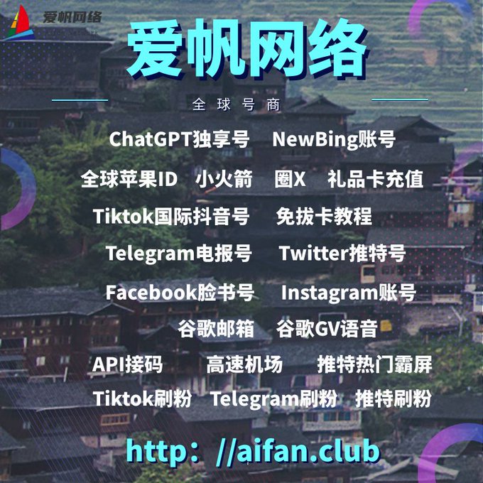 ChatGPT账号 美区id 飞机账号 苹果id Tiktok账号 推特账号 脸书账号 ins账号