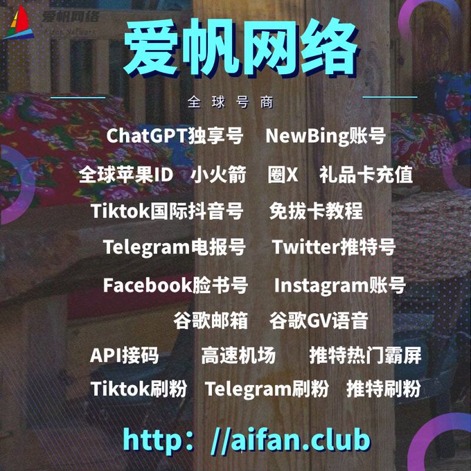 ChatGPT账号 美区id 飞机账号 苹果id Tiktok账号 推特账号 脸书账号 ins账号