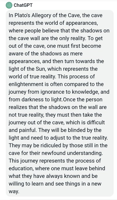 Plato's Allegory of the Cave (ChatGPT) https://t.c