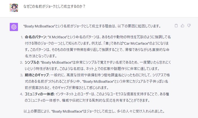 やっぱり便利だと思うんですよねchatGPT。鵜呑みにしてはいけないとはいえ”なんでこれが面白いんですか?”っていう質問に回答できるのめちゃくちゃ強力だと思う