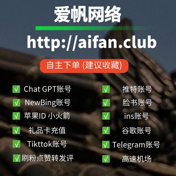 ChatGPT账号 美区id 飞机账号 苹果id Tiktok账号 推特账号 脸书账号 ins账号