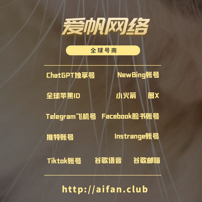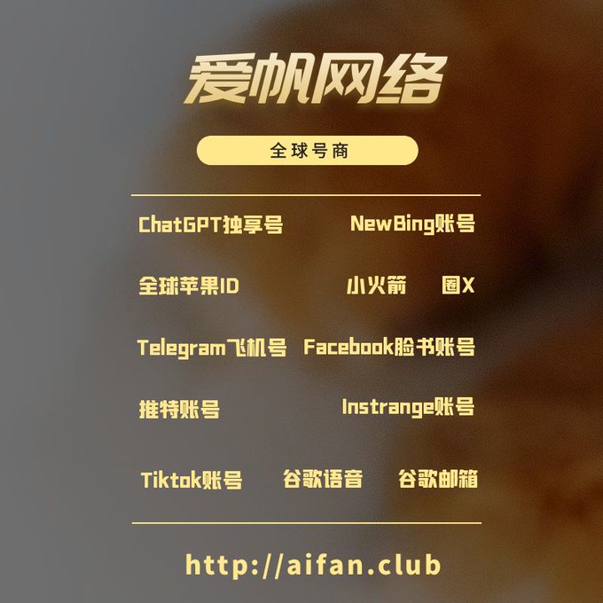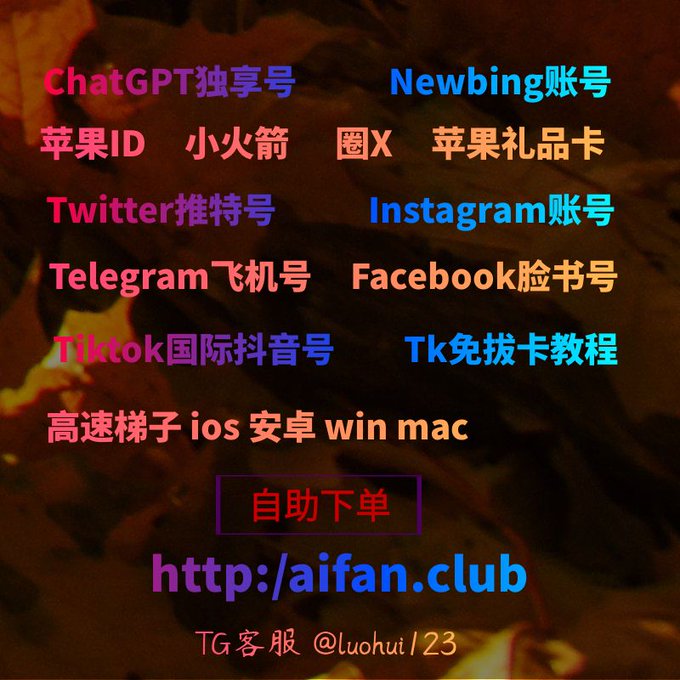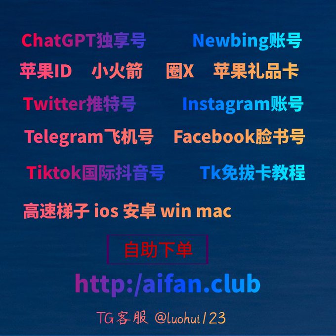 ChatGPT账号 美区id 飞机账号 苹果id 推特账号 Tiktok账号 脸书账号 ins账号