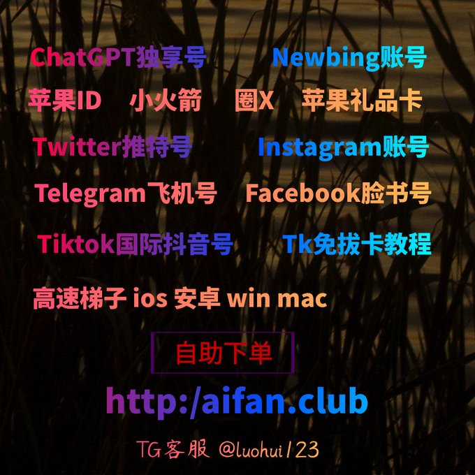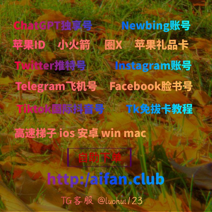 ChatGPT账号 美区id 飞机账号 苹果id Tiktok账号 推特账号 脸书账号 ins账号