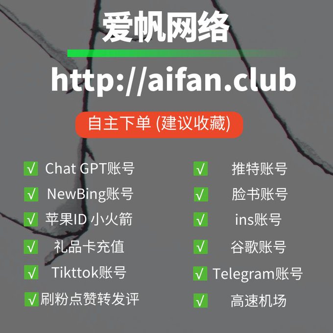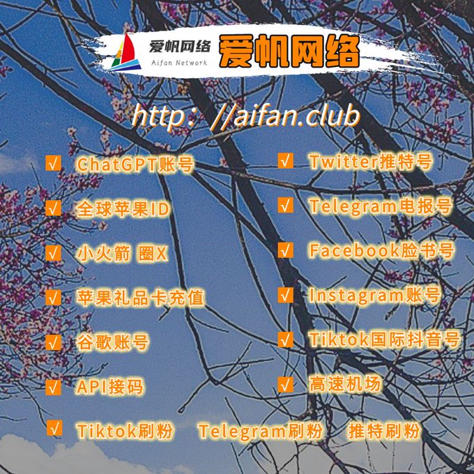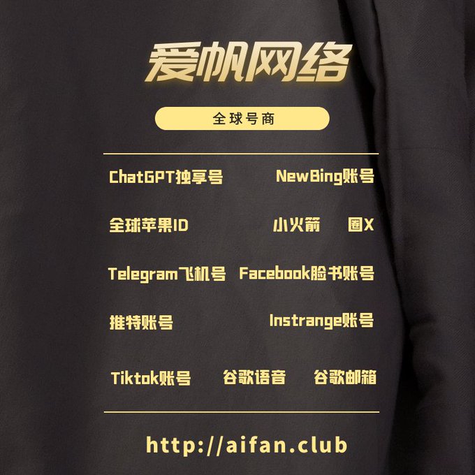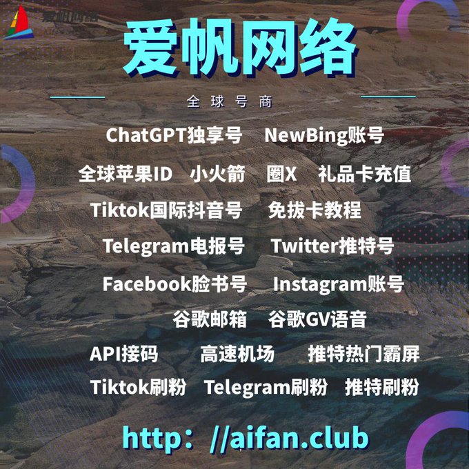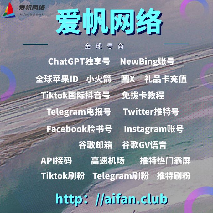 ChatGPT账号 美区id 飞机账号 苹果id 推特账号 Tiktok账号 脸书账号 ins账号