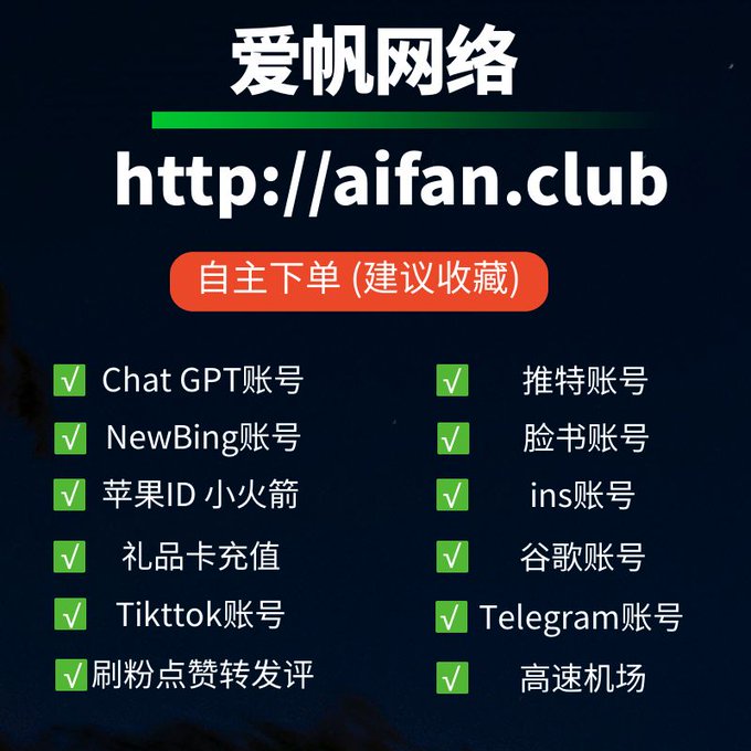 ChatGPT账号 美区id 飞机账号 苹果id Tiktok账号 推特账号 脸书账号 ins账号