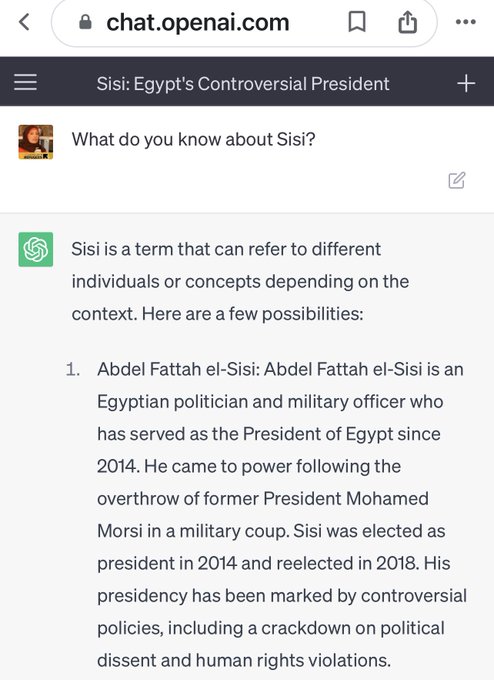 دخلت سألت الذكاء الاصطناعي ChatGPT، تعرف ايه عن السيسي،