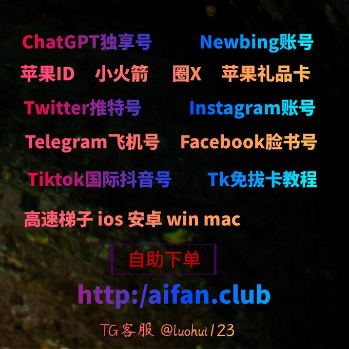 ChatGPT账号 美区id 飞机账号 苹果id Tiktok账号 推特账号 脸书账号 ins账号