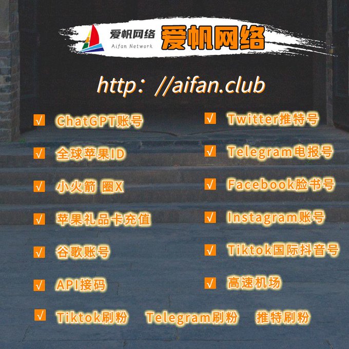 ChatGPT账号 美区id 飞机账号 苹果id Tiktok账号 推特账号 脸书账号 ins账号
