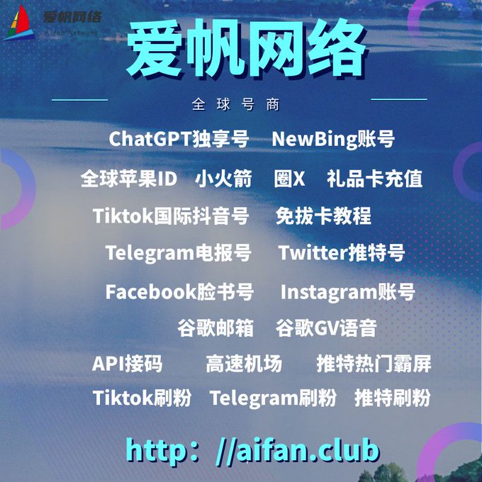 ChatGPT账号 美区id 飞机账号 苹果id Tiktok账号 推特账号 脸书账号 ins账号