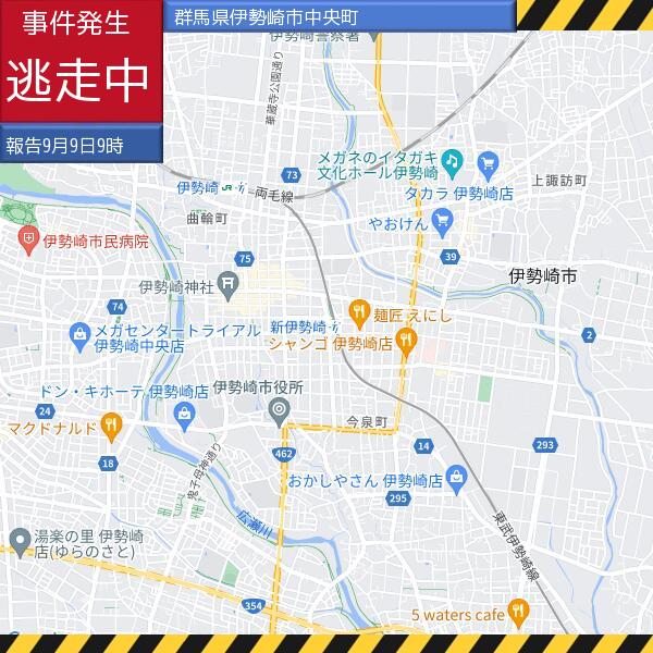 【速報】昨日、伊勢崎市中央町で男性が頭を殴られ、重傷を負う傷害事件が発生。犯人は凶器を持ち逃走中。夜間の外出は控え、自宅の戸締りを確実にし、不審な人物を見かけたら警察へ通報を。