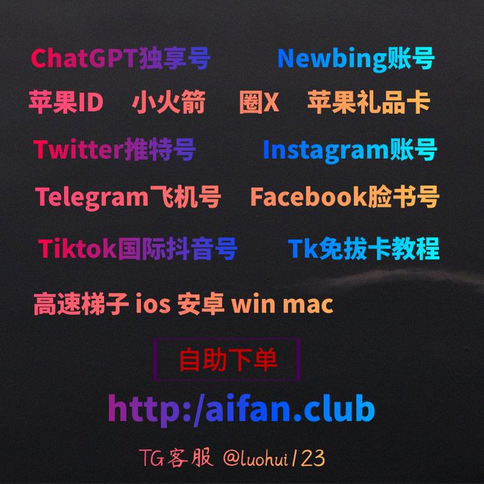 ChatGPTPlus*ChatGPT账号*小火箭*飞机号*苹果id*Tiktok账号*推特账号