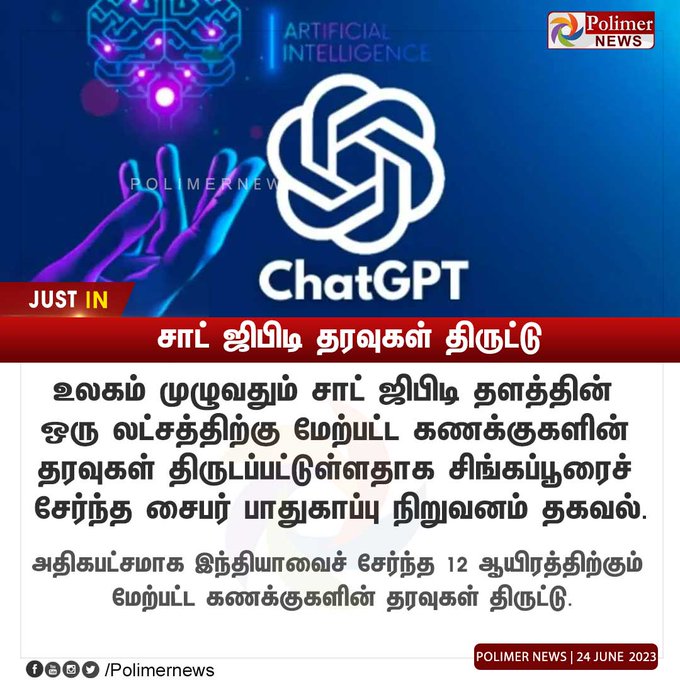 #NEWSUPDATE || சேட் ஜிபிடி தரவுகள் திருட்டு | #ChatGPT