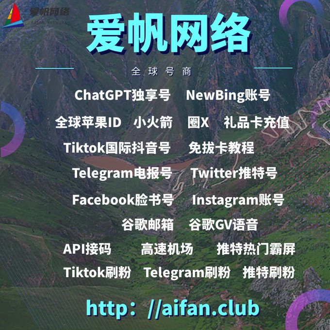 ChatGPT账号 美区id 飞机账号 苹果id 推特账号 Tiktok账号 脸书账号 ins账号
