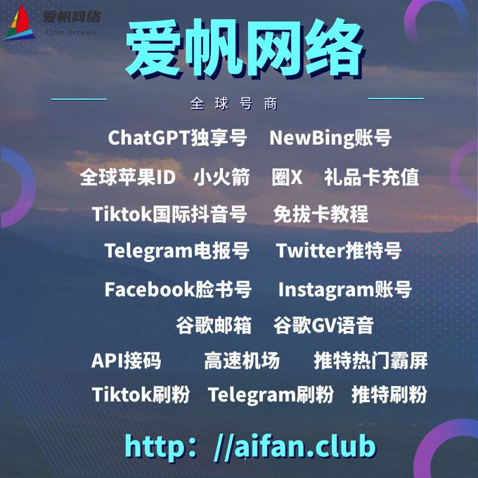 ChatGPT账号 美区id 飞机账号 苹果id Tiktok账号 推特账号 脸书账号 ins账号