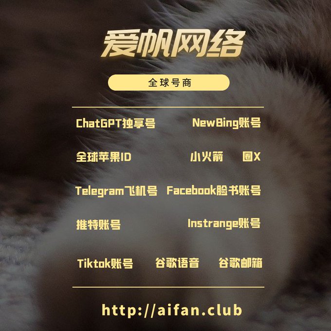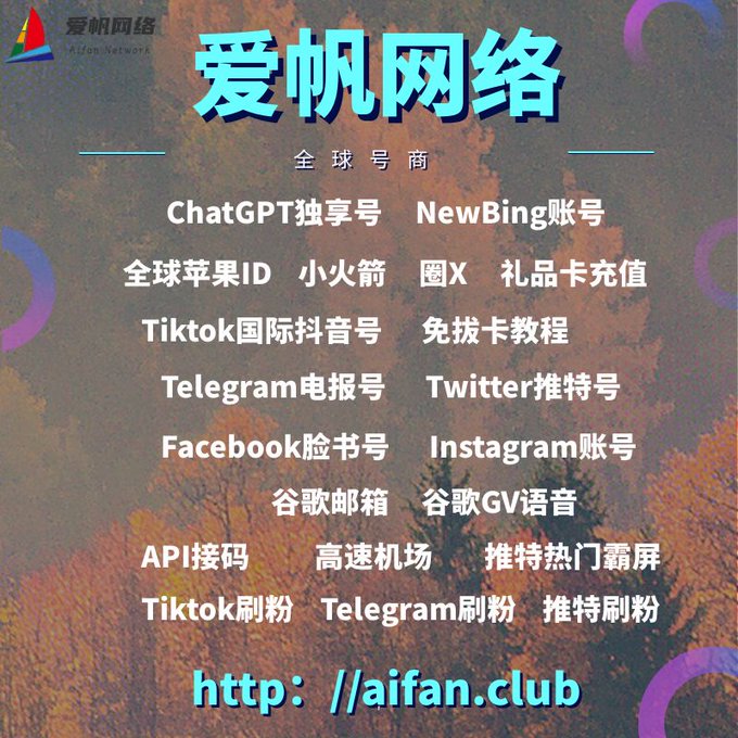 ChatGPT账号 美区id 飞机账号 苹果id Tiktok账号 推特账号 脸书账号 ins账号