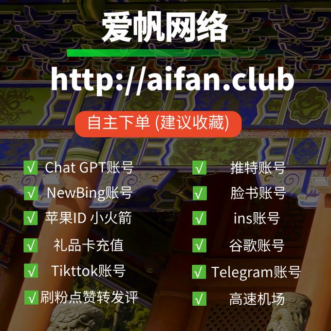 ChatGPT账号 美区id 飞机账号 苹果id Tiktok账号 推特账号 脸书账号 ins账号