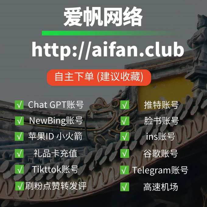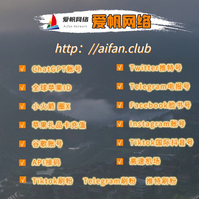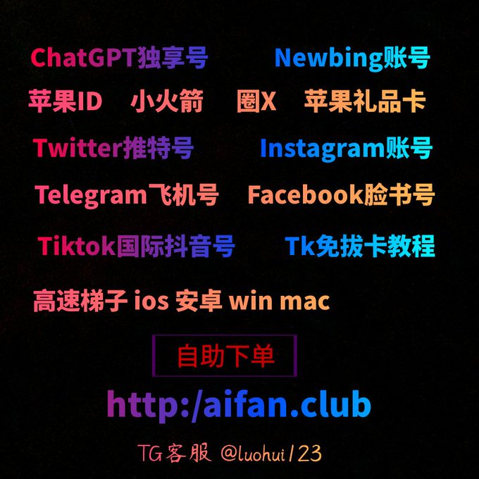 ChatGPT账号 美区id 飞机账号 苹果id Tiktok账号 推特账号 脸书账号 ins账号