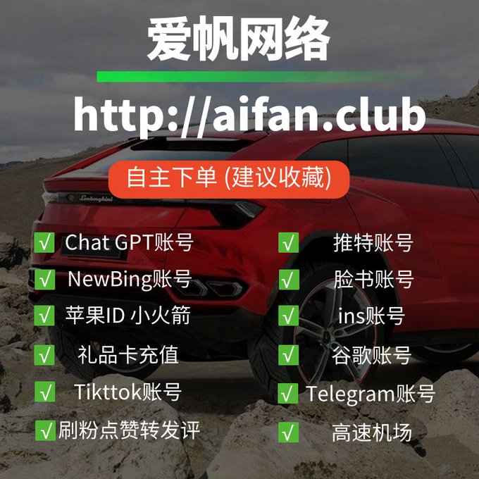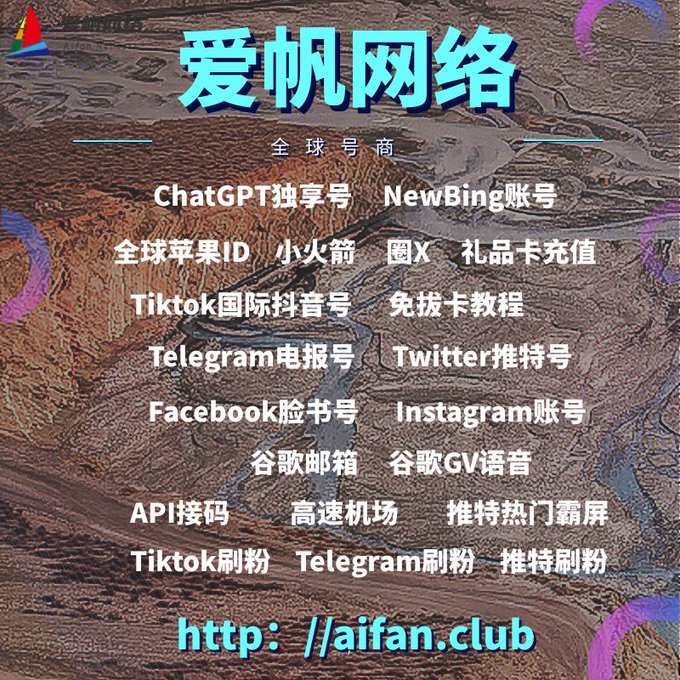 ChatGPT账号 美区id 飞机账号 苹果id Tiktok账号 推特账号 脸书账号 ins账号