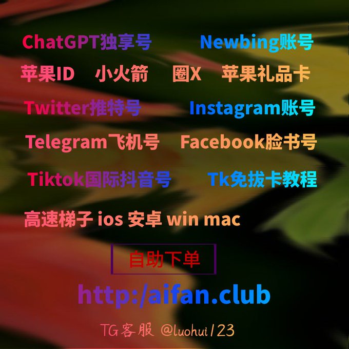 ChatGPT账号 美区id 飞机账号 苹果id Tiktok账号 推特账号 脸书账号 ins账号