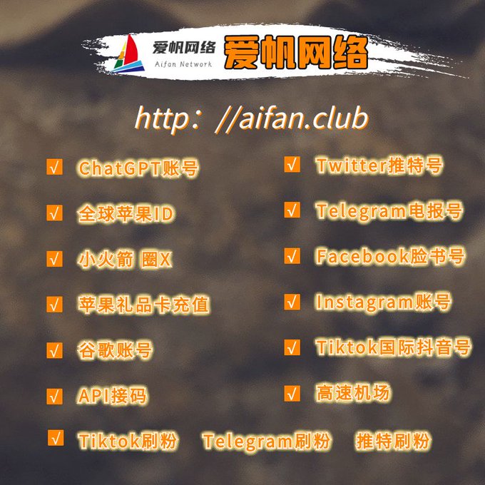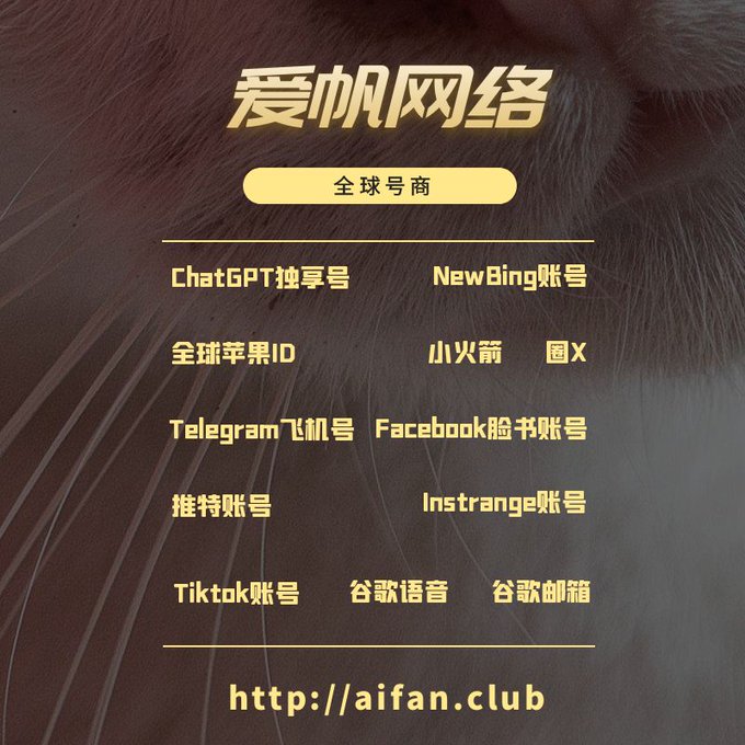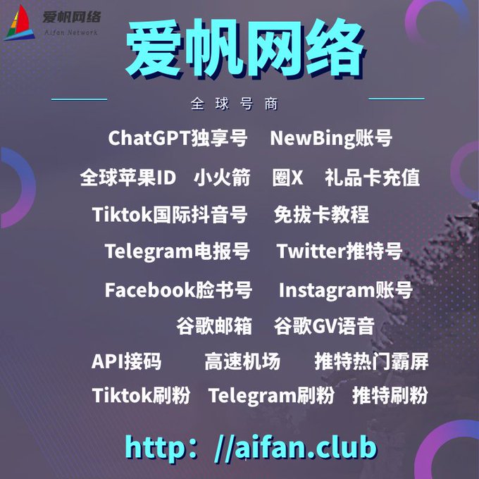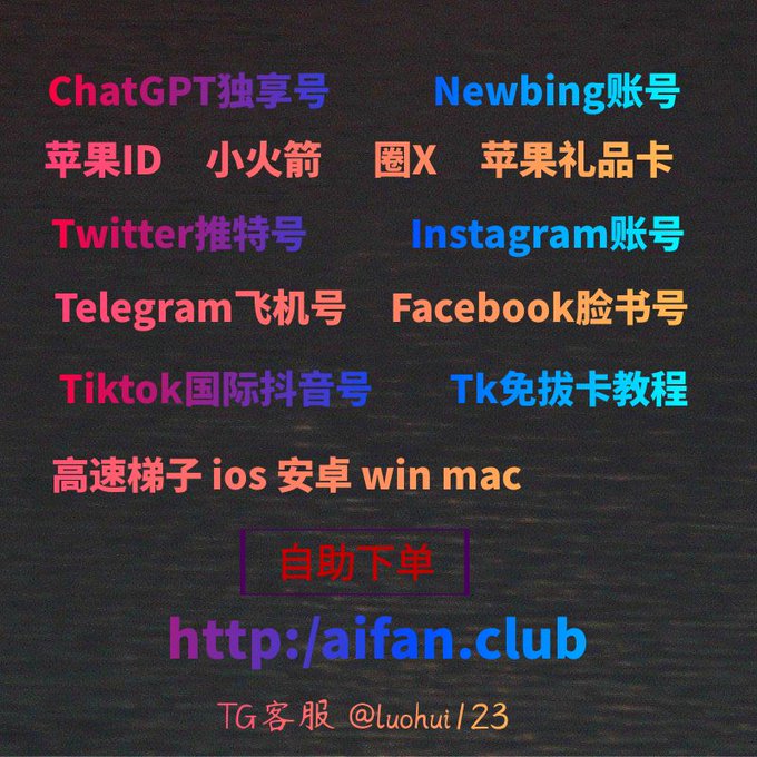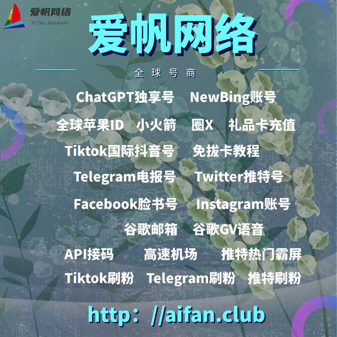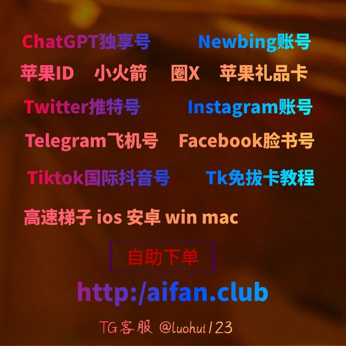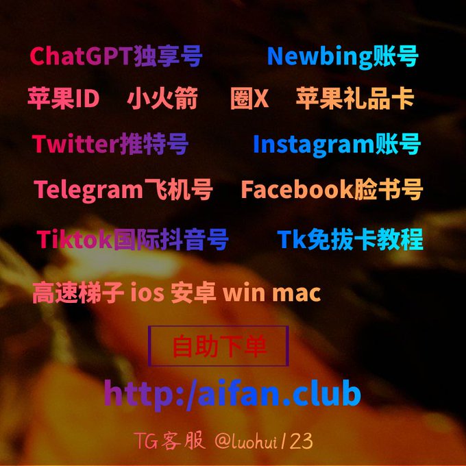ChatGPT账号 美区id 飞机账号 苹果id Tiktok账号 推特账号 脸书账号 ins账号