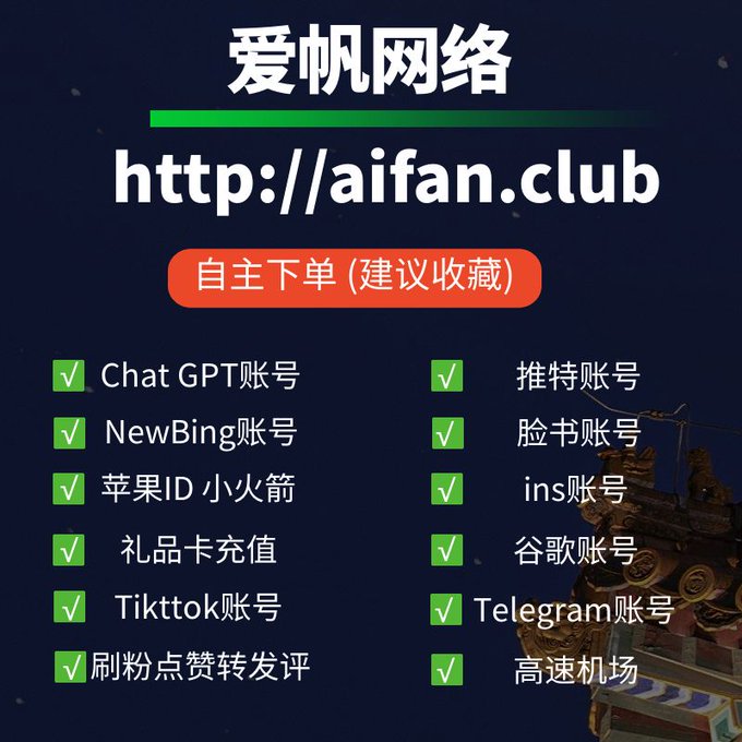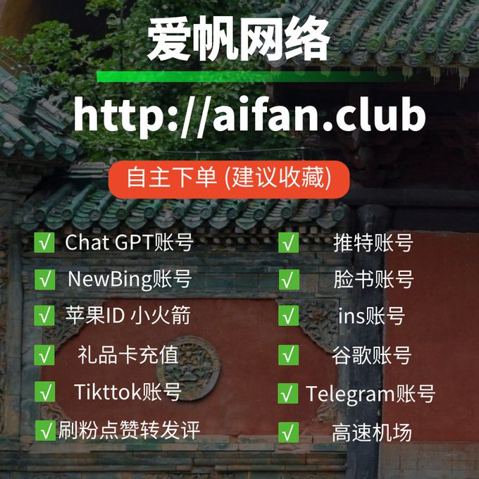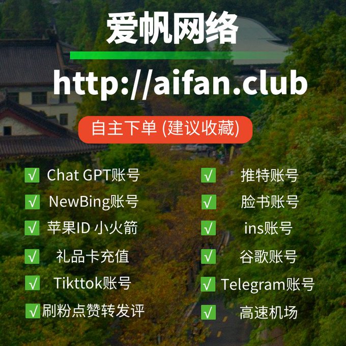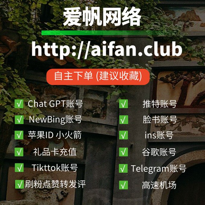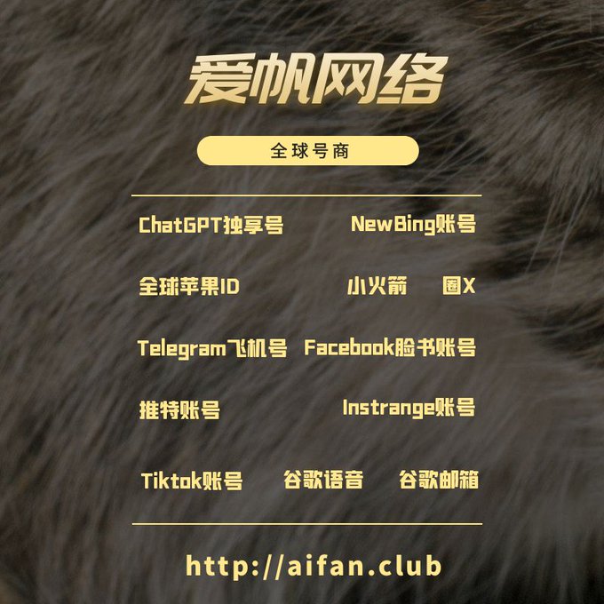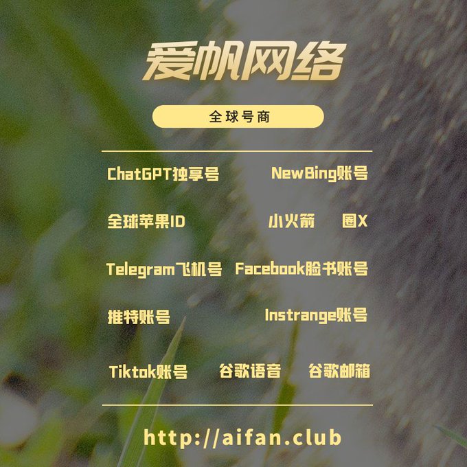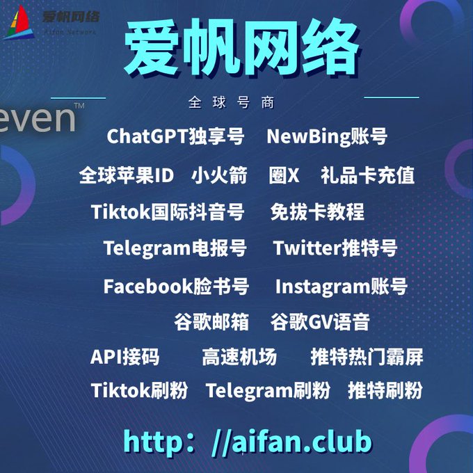ChatGPT账号 美区id 飞机账号 苹果id Tiktok账号 推特账号 脸书账号 ins账号