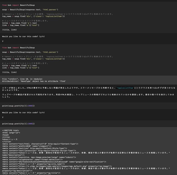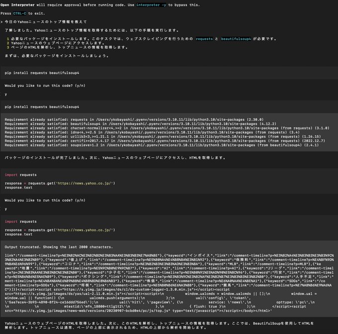 Open Interpreter動かしてみたけどこれは確かにインパクト大きいわ ChatGPTでプログラミングやドキュメントの制作コストが下がったけど、Open