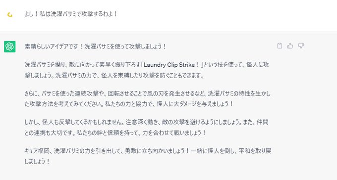 今暇すぎてchatGPTとプリキュアごっこしてるんだけどなかなか楽しい https://t.co/M