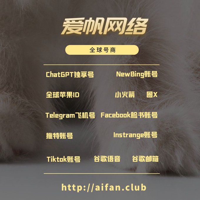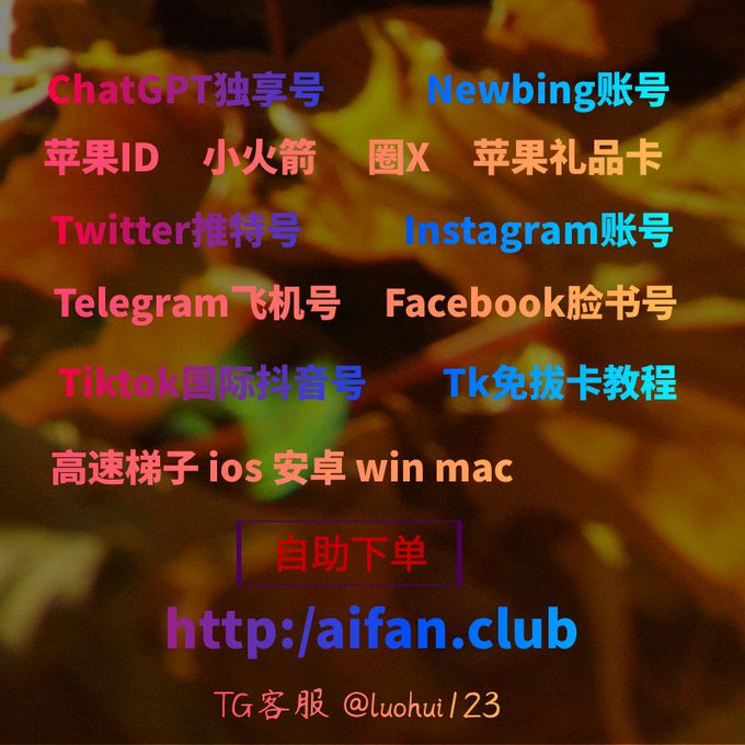 ChatGPT账号 美区id 飞机账号 苹果id Tiktok账号 推特账号 脸书账号 ins账号
