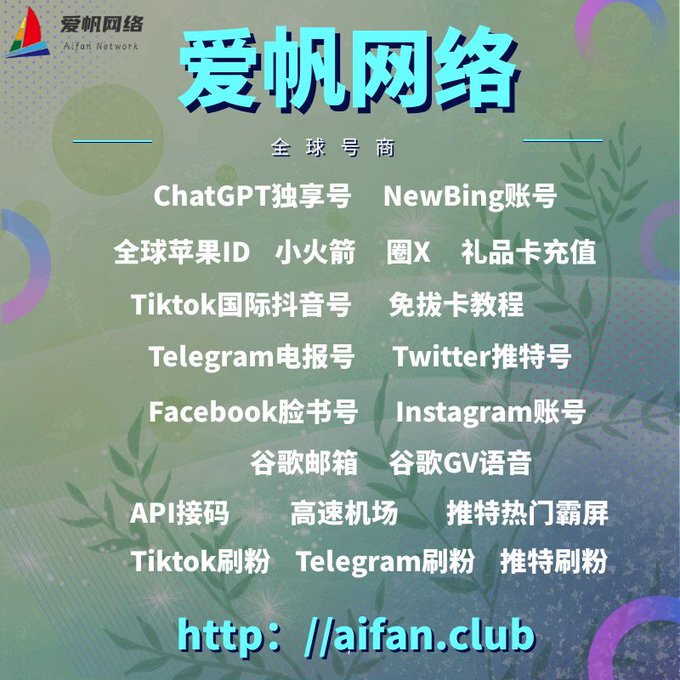 ChatGPT账号 美区id 飞机账号 苹果id 推特账号 Tiktok账号 脸书账号 ins账号
