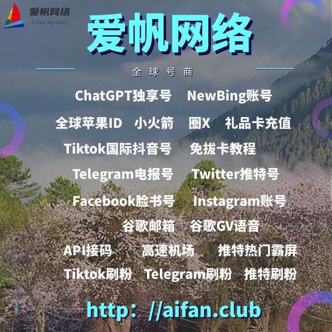 ChatGPT账号 美区id 飞机账号 苹果id Tiktok账号 推特账号 脸书账号 ins账号