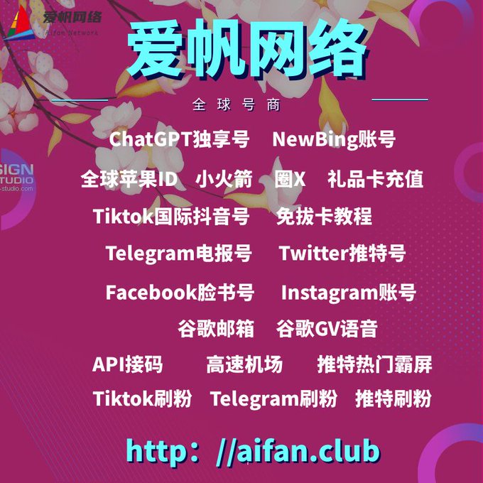 ChatGPT账号 美区id 飞机账号 苹果id Tiktok账号 推特账号 脸书账号 ins账号