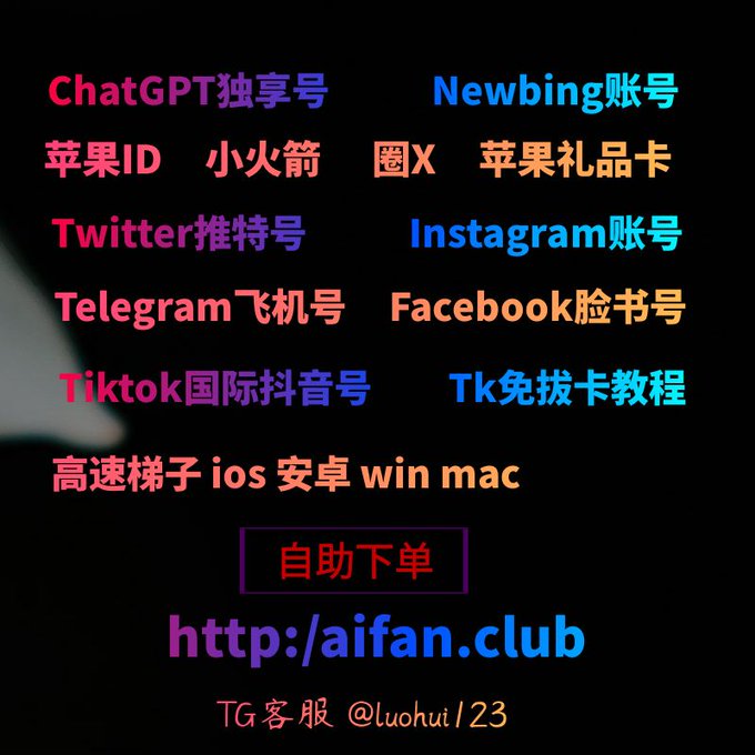 ChatGPT账号 美区id 飞机账号 苹果id Tiktok账号 推特账号 脸书账号 ins账号