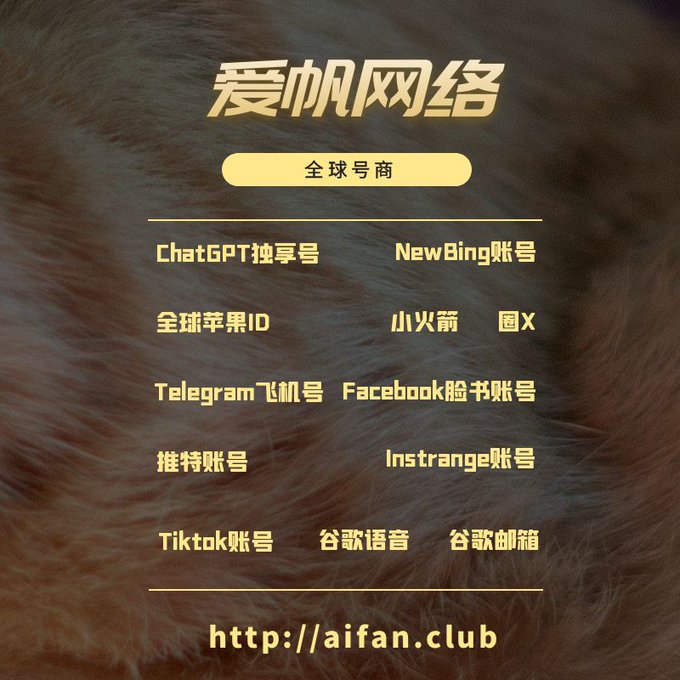ChatGPT账号 美区id 飞机账号 苹果id Tiktok账号 推特账号 脸书账号 ins账号