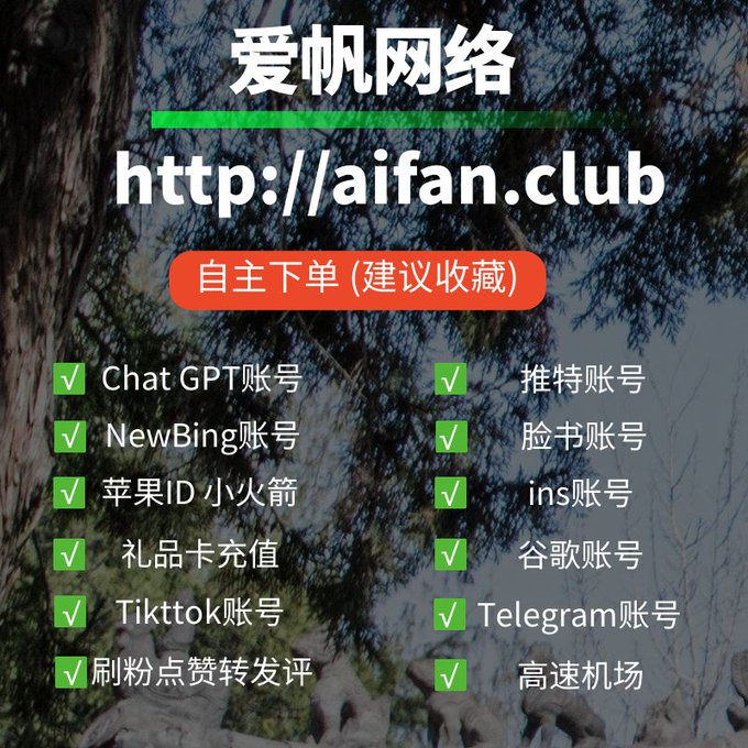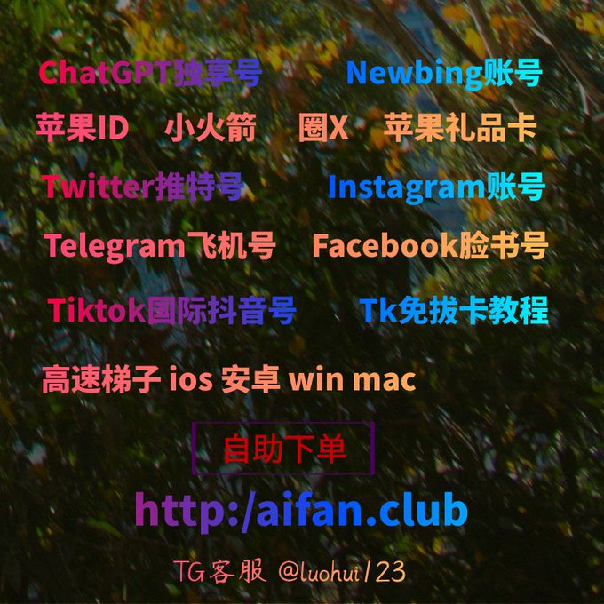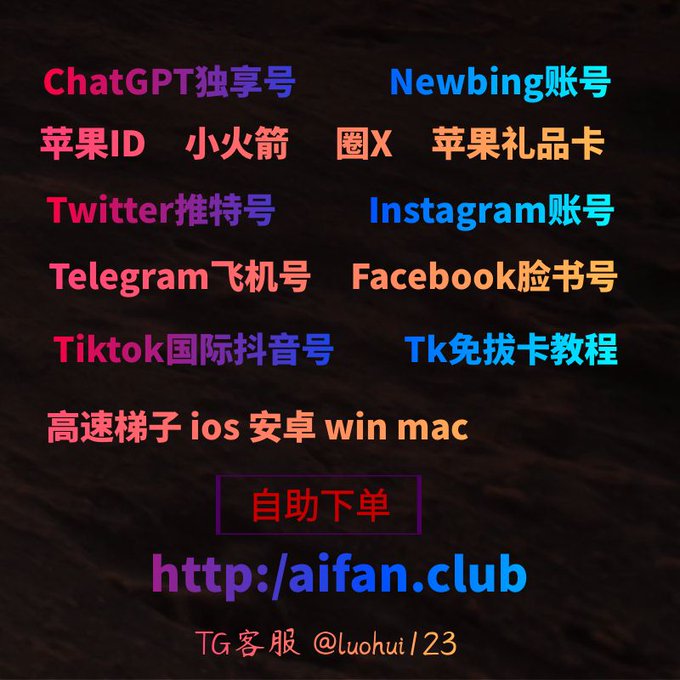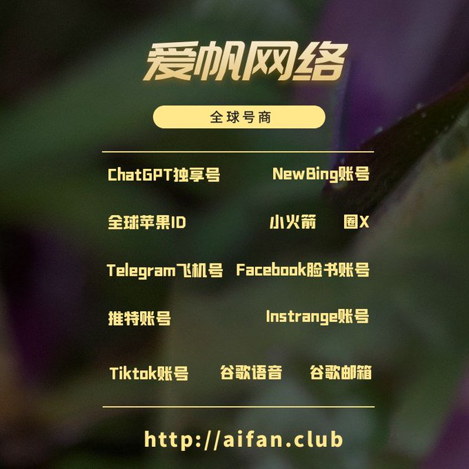 ChatGPT账号 美区id 飞机账号 苹果id Tiktok账号 推特账号 脸书账号 ins账号