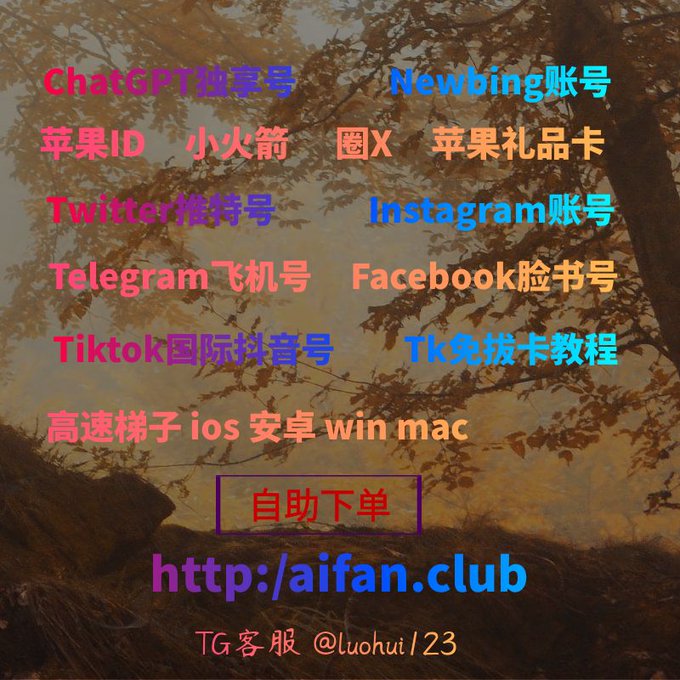 ChatGPT账号 美区id 飞机账号 苹果id Tiktok账号 推特账号 脸书账号 ins账号
