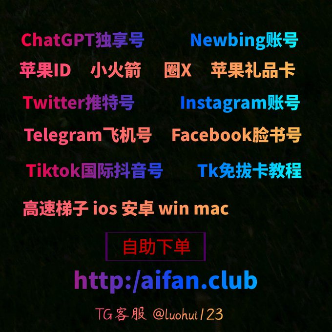 ChatGPT账号美区id小火箭tiktok账号谷歌账号IG账号苹果id推特账号飞机号