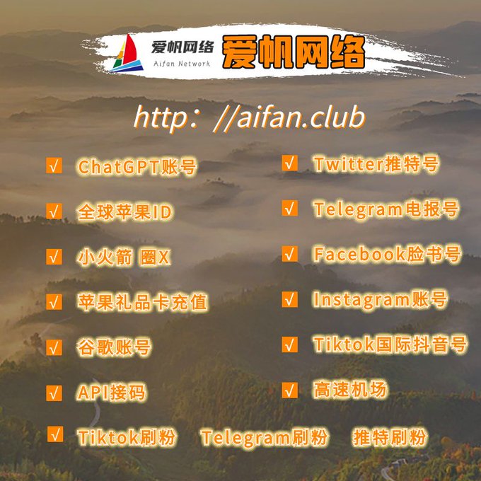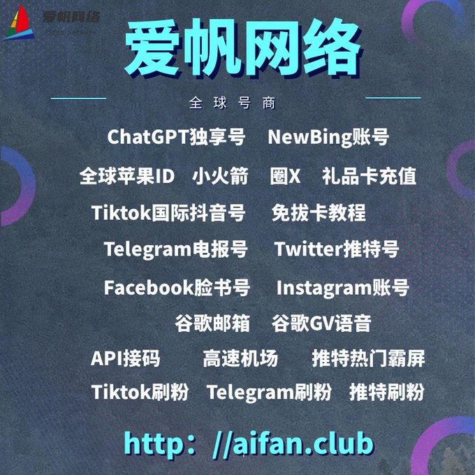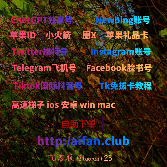 ChatGPT账号 美区id 飞机账号 苹果id Tiktok账号 推特账号 脸书账号 ins账号