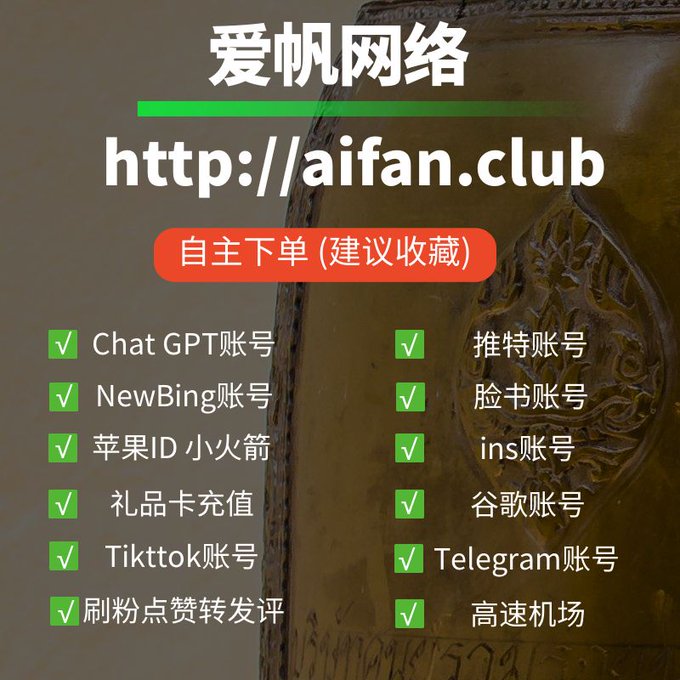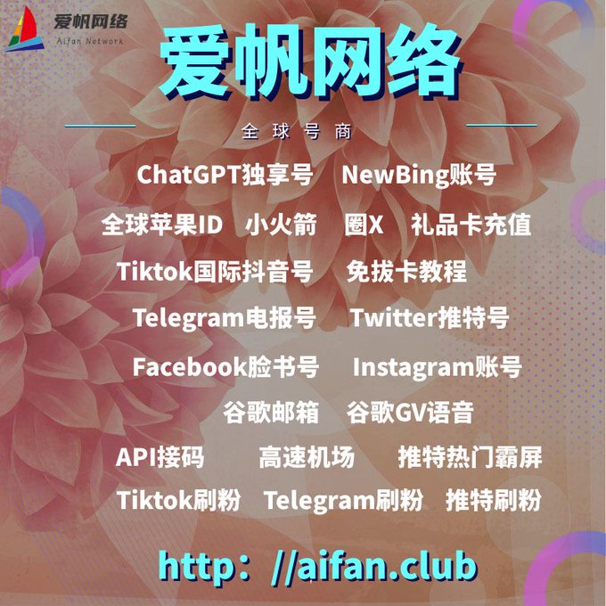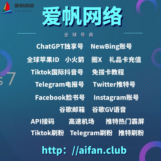 ChatGPT账号 美区id 飞机账号 苹果id Tiktok账号 推特账号 脸书账号 ins账号